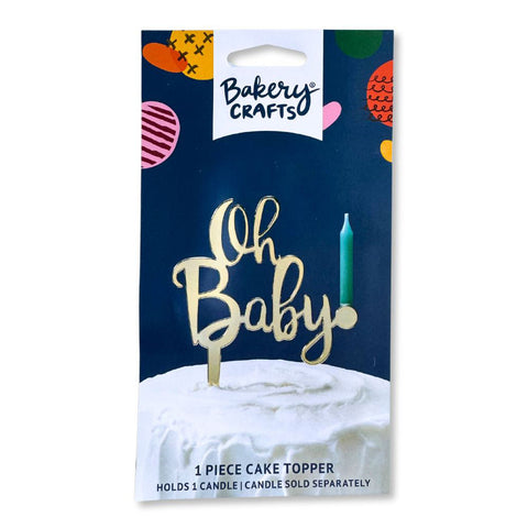This gold plastic cake topper pick effortlessly adds glam to your cakes. Not only does it spell out oh baby in a trendy font, but it also holds a candle, turning your cake into a glowing masterpiece!