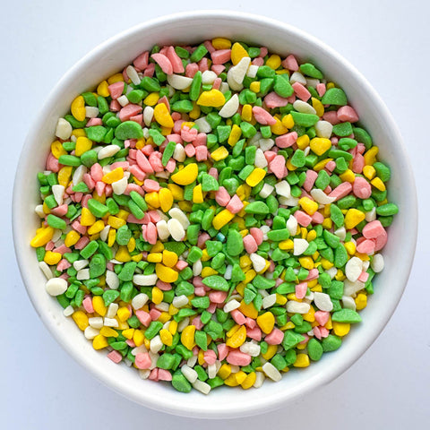 The texture is similar to our quin sprinkles, so it won't hurt your teeth, but it adds the perfect crunchy texture and fruity flavor to your candy-making creations.